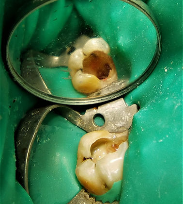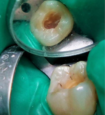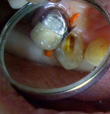 Fig7. L'estesa carie della porzione palatale del canino 1.3 ha reso necessaria la terapia canalare e la successiva ricostruzione con perno.